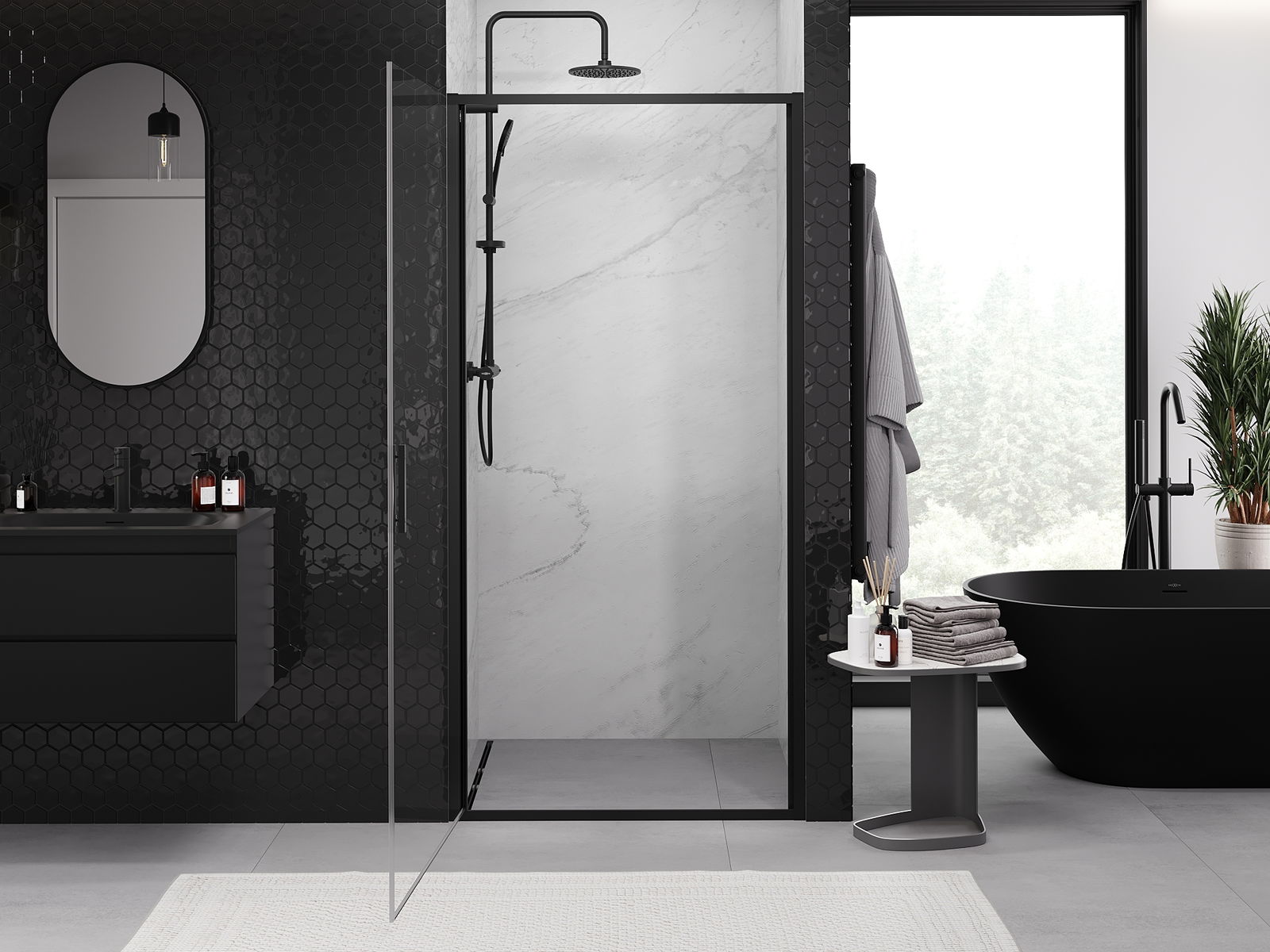 Produktu, atkarībā no vajadzībām, var uzstādīt gan uz dušas paliktņa, gan tieši uz grīdas. Universālā montāžas metode ļauj pielāgot produktu dažāda veida vannas istabām un telpas konfigurācijām.