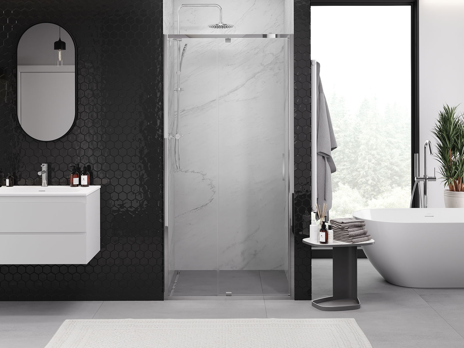 Pateicoties universālajai montāžas sistēmai, dušas durvis var uzstādīt no kreisās vai labās puses, atkarībā no vajadzībām. Tādējādi jūs varat viegli izstrādāt dušu, kas piemērota vannas istabas telpai.