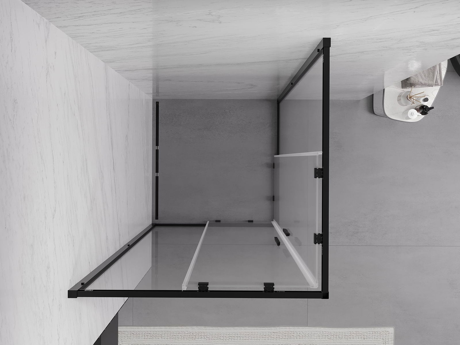 Mexen Exo kvadrātiska dušas kabīne bīdāma 70 x 70 cm, caurspīdīga, melna - 8111-070-070-70-00