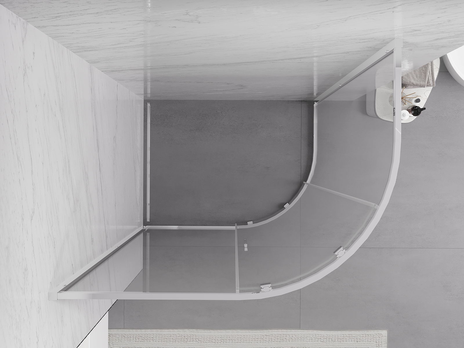 Produktu, atkarībā no vajadzībām, var uzstādīt gan uz dušas paliktņa, gan tieši uz grīdas. Universālā montāžas metode ļauj pielāgot produktu dažāda veida vannas istabām un telpas konfigurācijām.