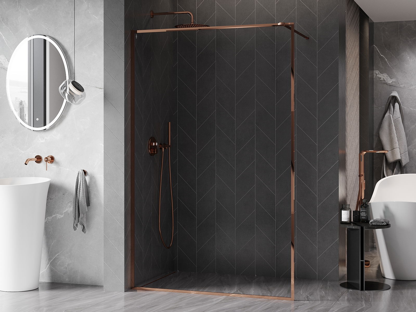 Mexen Kioto-F dušas ekrāns Walk-in ar rāmi 65 x 202 cm, caurspīdīgs 8 mm, rozā zelts - 800-065-104-60-00