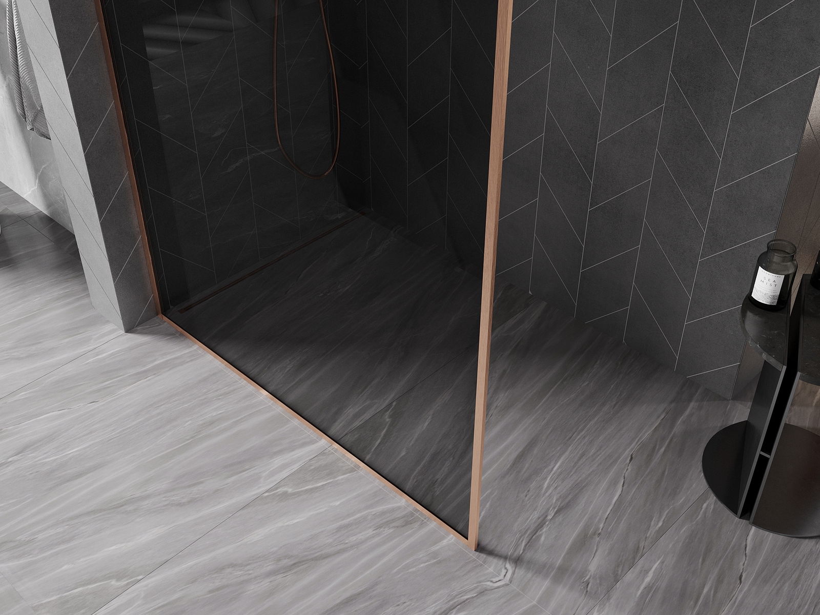 Mexen Kioto-F Dušas siena Walk-in ar rāmi 130 x 202 cm, grafīts 8 mm, birstēts varš - 800-130-104-65-40