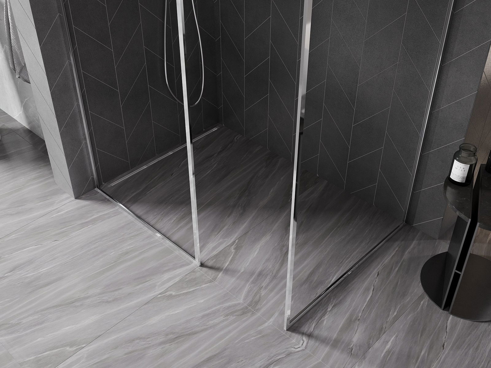 Pateicoties universālajai montāžas sistēmai, dušas durvis var uzstādīt no kreisās vai labās puses, atkarībā no vajadzībām. Tādējādi jūs varat viegli izstrādāt dušu, kas piemērota vannas istabas telpai.