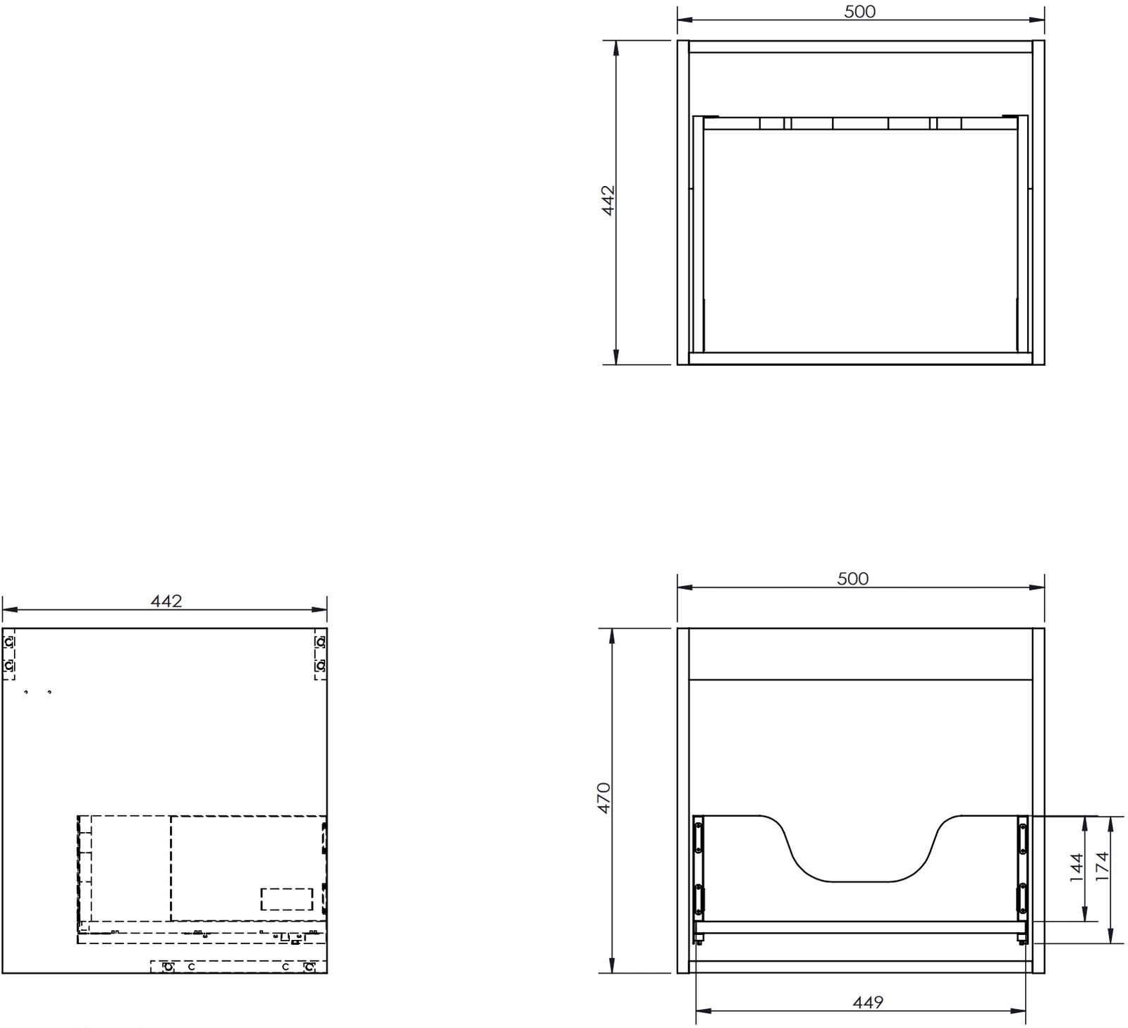 Izgriezums atvilktnē ir veidots tā, lai tajā varētu ietilpt sifons, kas ir nepieciešams izlietņu uzstādīšanā. Pateicoties tam, mēbele var tikt pilnībā funkcionāli uzstādīta, neatstājot ievērojamu vietu atvilktnē instalācijai.