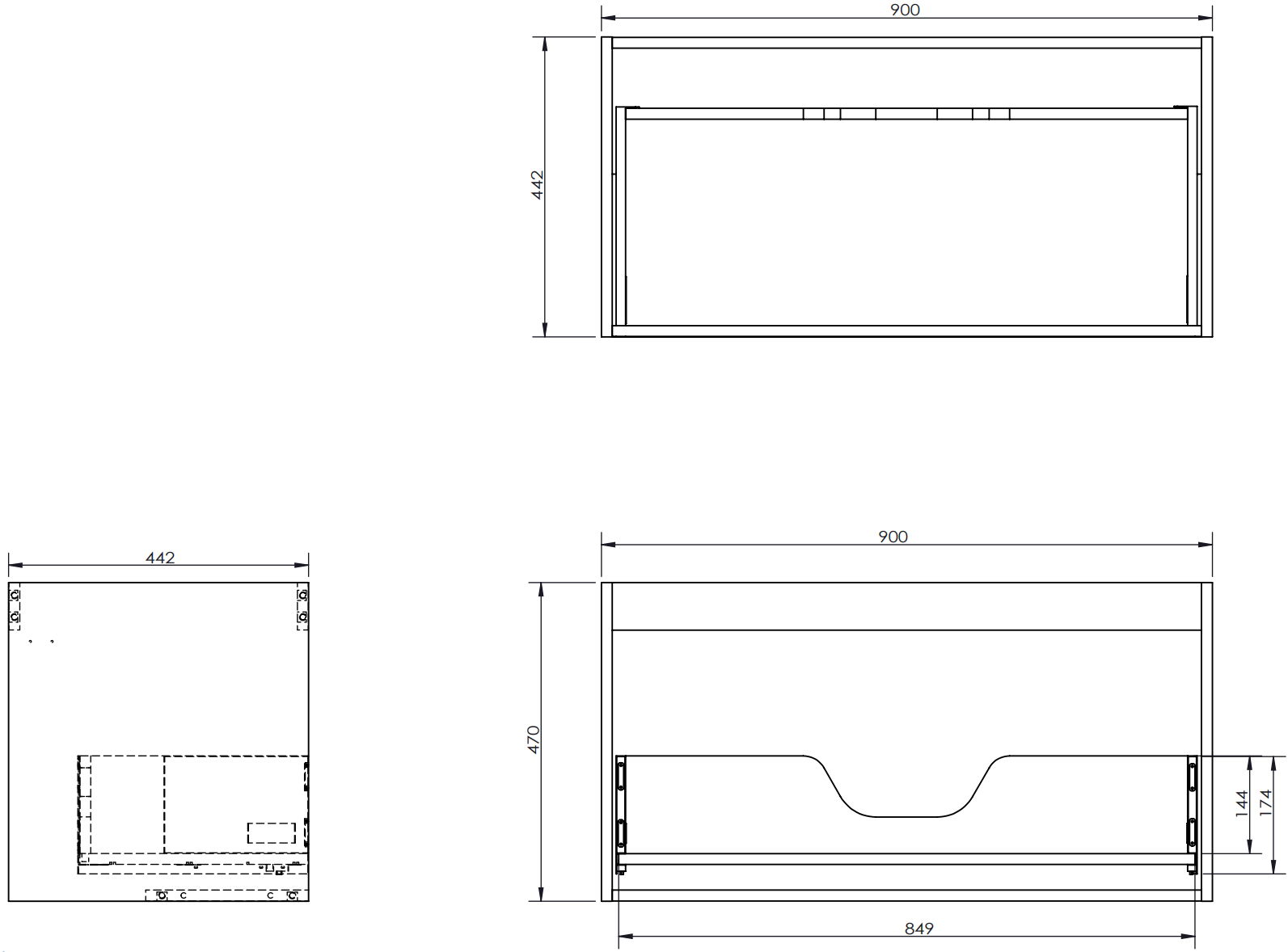 Izgriezums atvilktnē ir veidots tā, lai tajā varētu ietilpt sifons, kas ir nepieciešams izlietņu uzstādīšanā. Pateicoties tam, mēbele var tikt pilnībā funkcionāli uzstādīta, neatstājot ievērojamu vietu atvilktnē instalācijai.