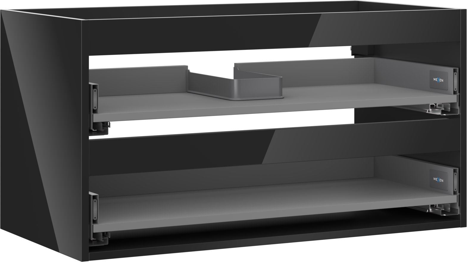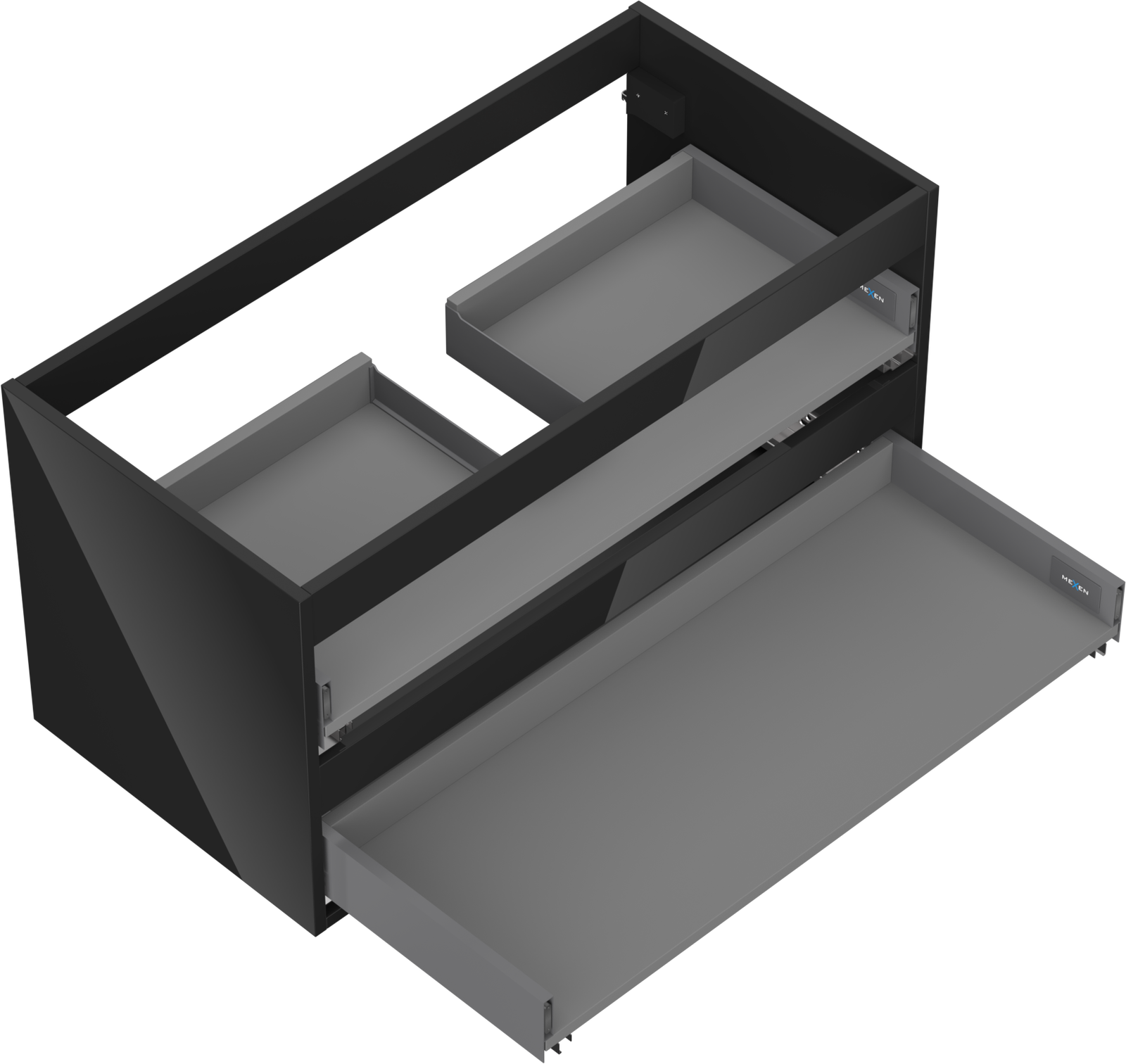 Mexen Box-A skapja korpuss zem izlietnes 90 cm, 2 atvilktnes, melns spīdums - 91AX0-0900-470-2-70