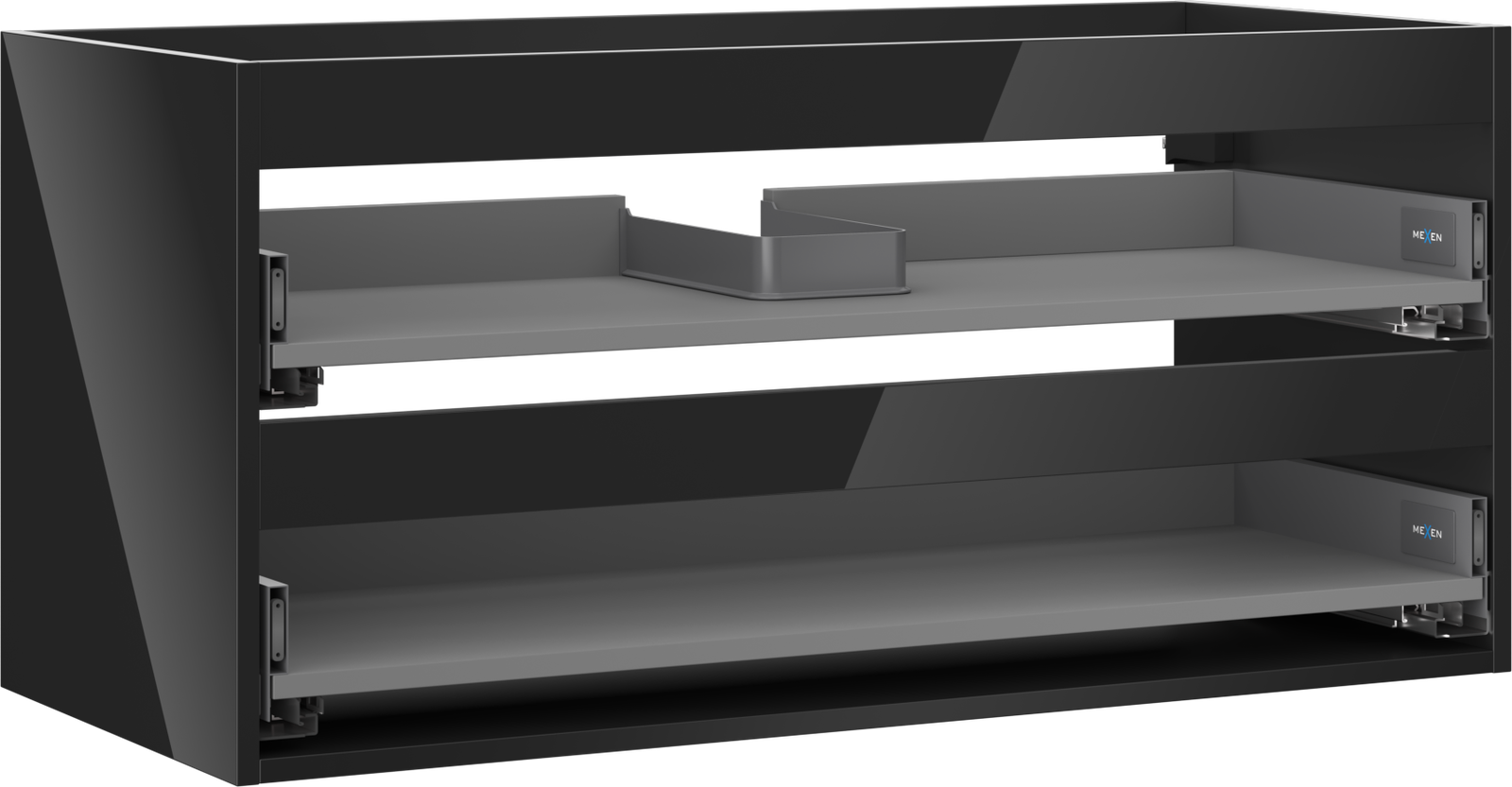 Mexen Box-A skapja korpuss zem izlietnes 100 cm, 2 atvilktnes, melns spīdums - 91AX0-1000-470-2-70