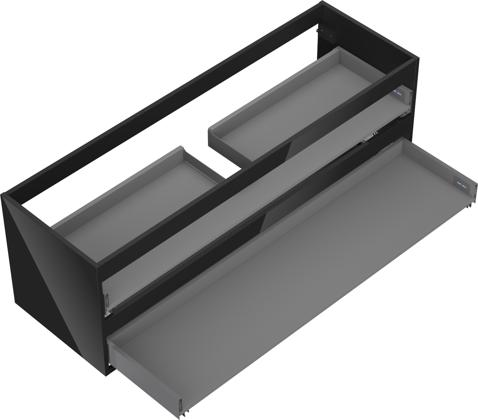 Mexen Box-A skapju korpuss zem izlietnes 140 cm, 2 atvilktnes, melns spīdums - 91AX0-1400-470-2-70