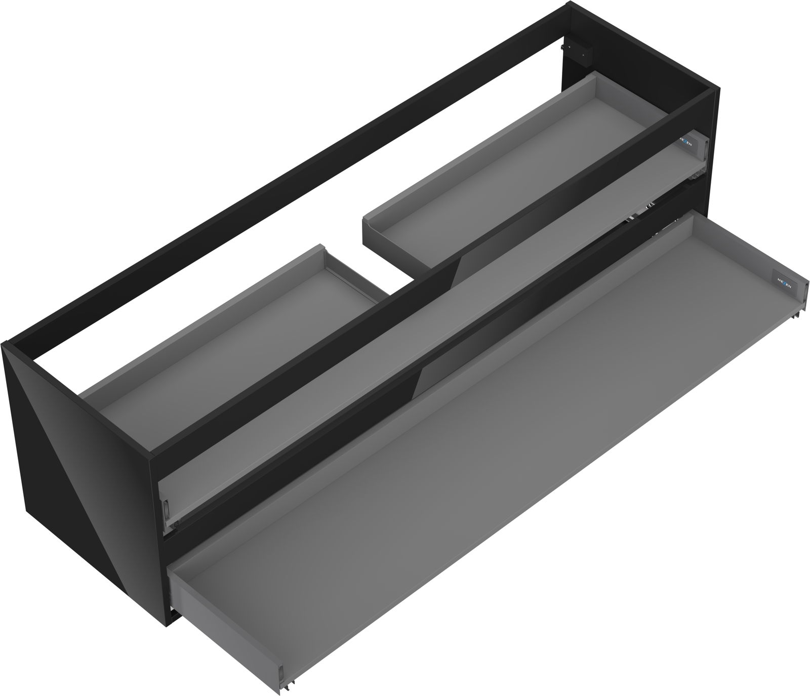 Mexen Box-A skapja korpuss zem izlietnes 160 cm, 2 atvilktnes, melns spīdums - 91AX0-1600-470-2-70