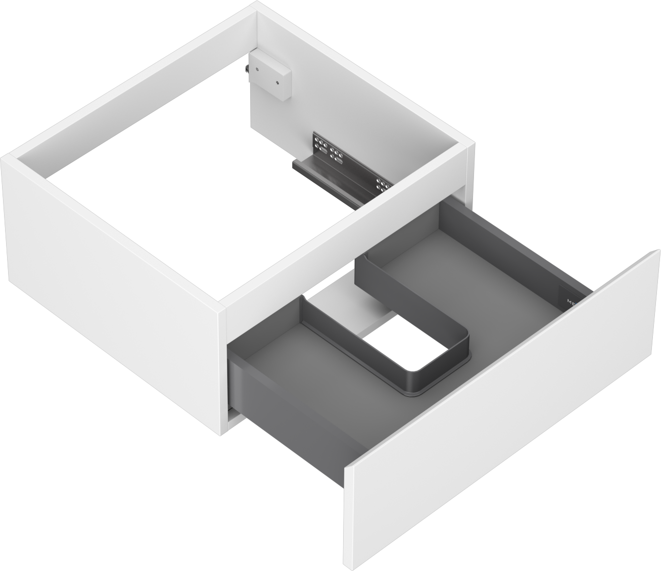 Izgriezums atvilktnē ir veidots tā, lai tajā varētu ietilpt sifons, kas ir nepieciešams izlietņu uzstādīšanā. Pateicoties tam, mēbele var tikt pilnībā funkcionāli uzstādīta, neatstājot ievērojamu vietu atvilktnē instalācijai.