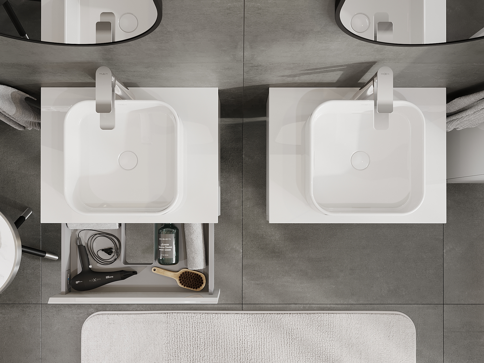 Mūsu modulārās vannas istabas mēbeles var savstarpēji kombinēt dažādās krāsu konfigurācijās, ļaujot pilnīgu personalizāciju. Var izvēlēties gan izskatu, gan atsevišķu elementu funkcijas, kas ļauj pielāgot mēbeles savām stilistiskajām un lietotāju vēlmēm.