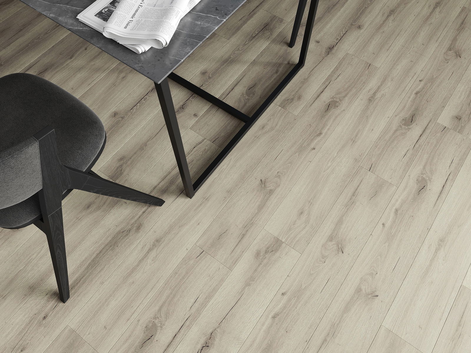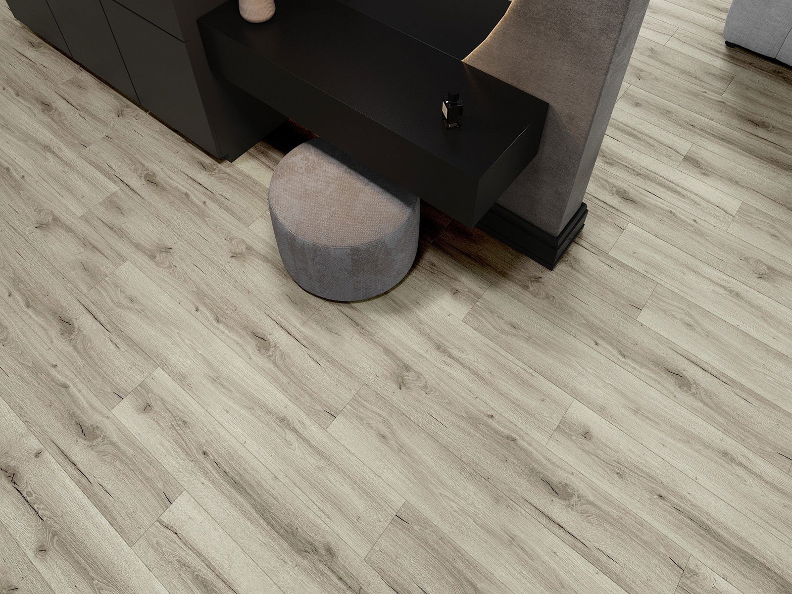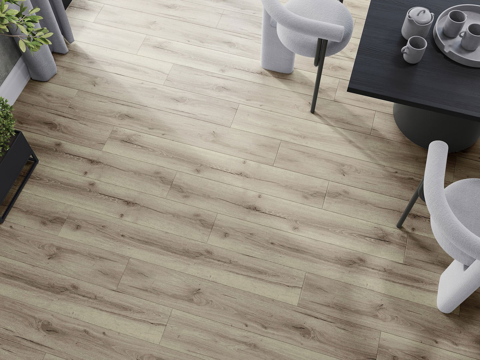 Paneļiem ir 4-pusējs fuga - katra mala ir frēzēta tā, lai pēc ieklāšanas izveidotos savienojums burta "V" formā. Šāds dizains padara grīdu izteiksmīgāku, piešķirot tai dziļumu un estētisku raksturu. Šis efekts ir īpaši novērtēts mūsdienu interjeros, kur detaļas izceļ telpas unikālo izskatu.