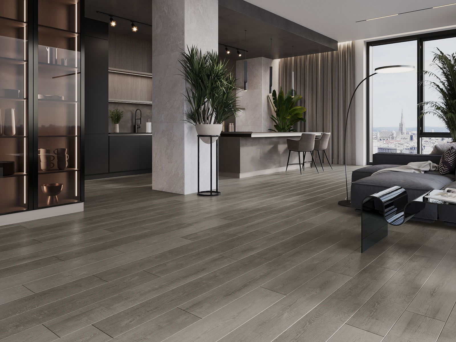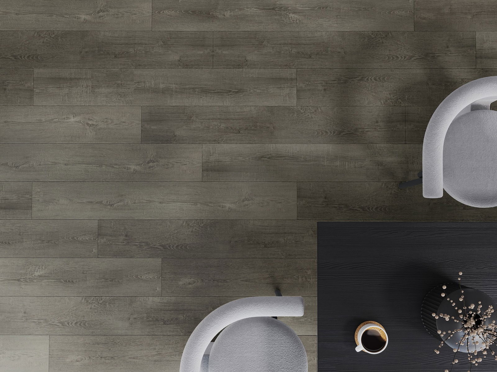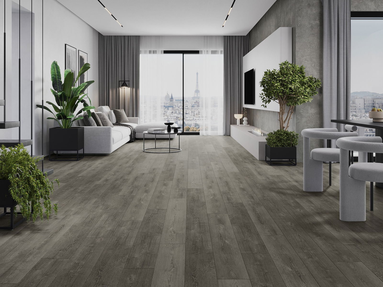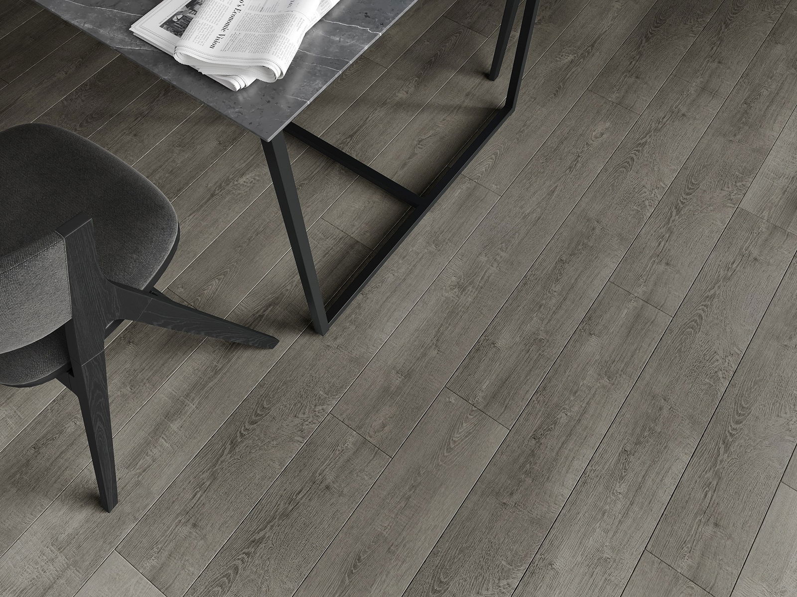 Paneļiem ir 4-pusējs fuga - katra mala ir frēzēta tā, lai pēc ieklāšanas izveidotos savienojums burta "V" formā. Šāds dizains padara grīdu izteiksmīgāku, piešķirot tai dziļumu un estētisku raksturu. Šis efekts ir īpaši novērtēts mūsdienu interjeros, kur detaļas izceļ telpas unikālo izskatu.
