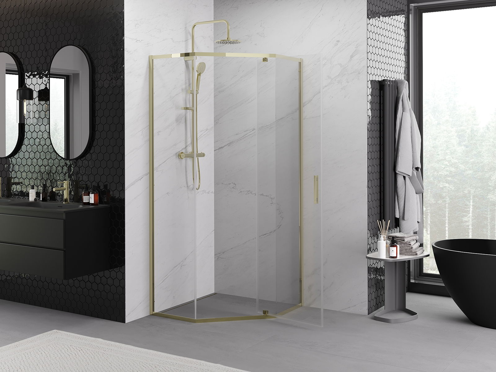 Mexen Exo piecstūra dušas kabīne ar veramām durvīm 100 x 100 cm, caurspīdīga, zelta - 812-100-100-50-00