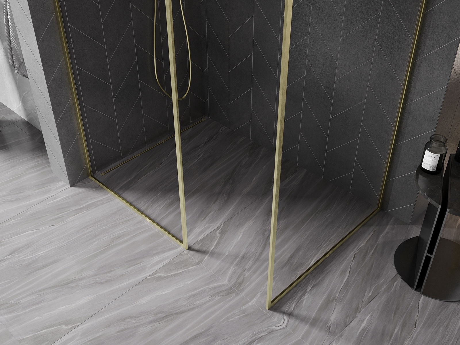Mexen Kioto-F dušas siena Walk-in ar rāmi 150 x 120 cm, caurspīdīga 8 mm, zelta matēta - 800-150-202-04-55-120
