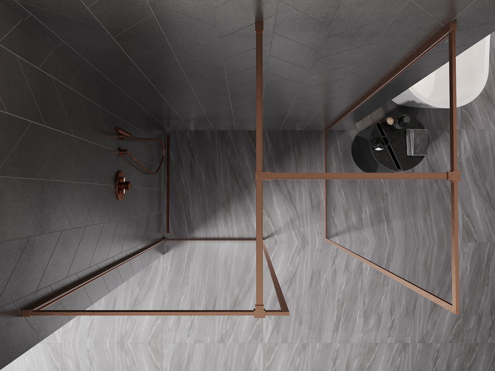 Mexen Kioto-F Dušas siena Walk-in ar rāmi 110 x 95 cm, caurspīdīga 8 mm, pulēts varš - 800-110-202-04-65-095