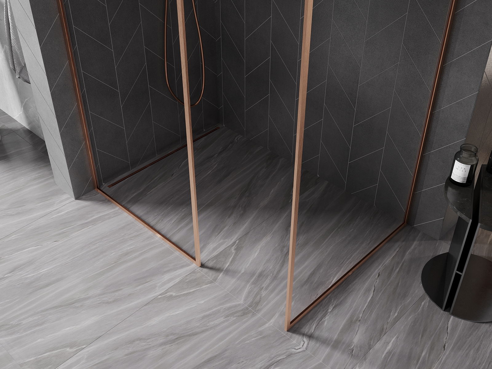 Mexen Kioto-F duša sienas Walk-in ar rāmi 160 x 105 cm, caurspīdīga 8 mm, matēta vara - 800-160-202-04-65-105