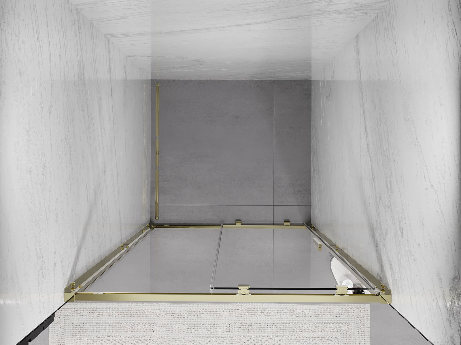 Mexen Exo bīdāmās dušas durvis 90 cm, caurspīdīgas, zelta - 8151-090-000-50-00