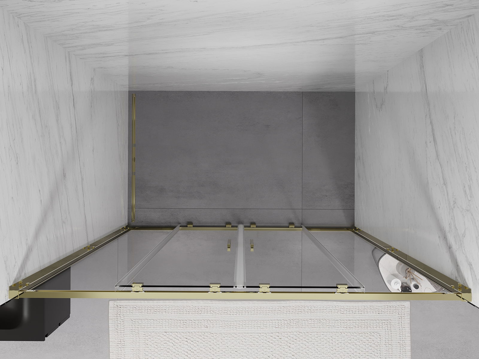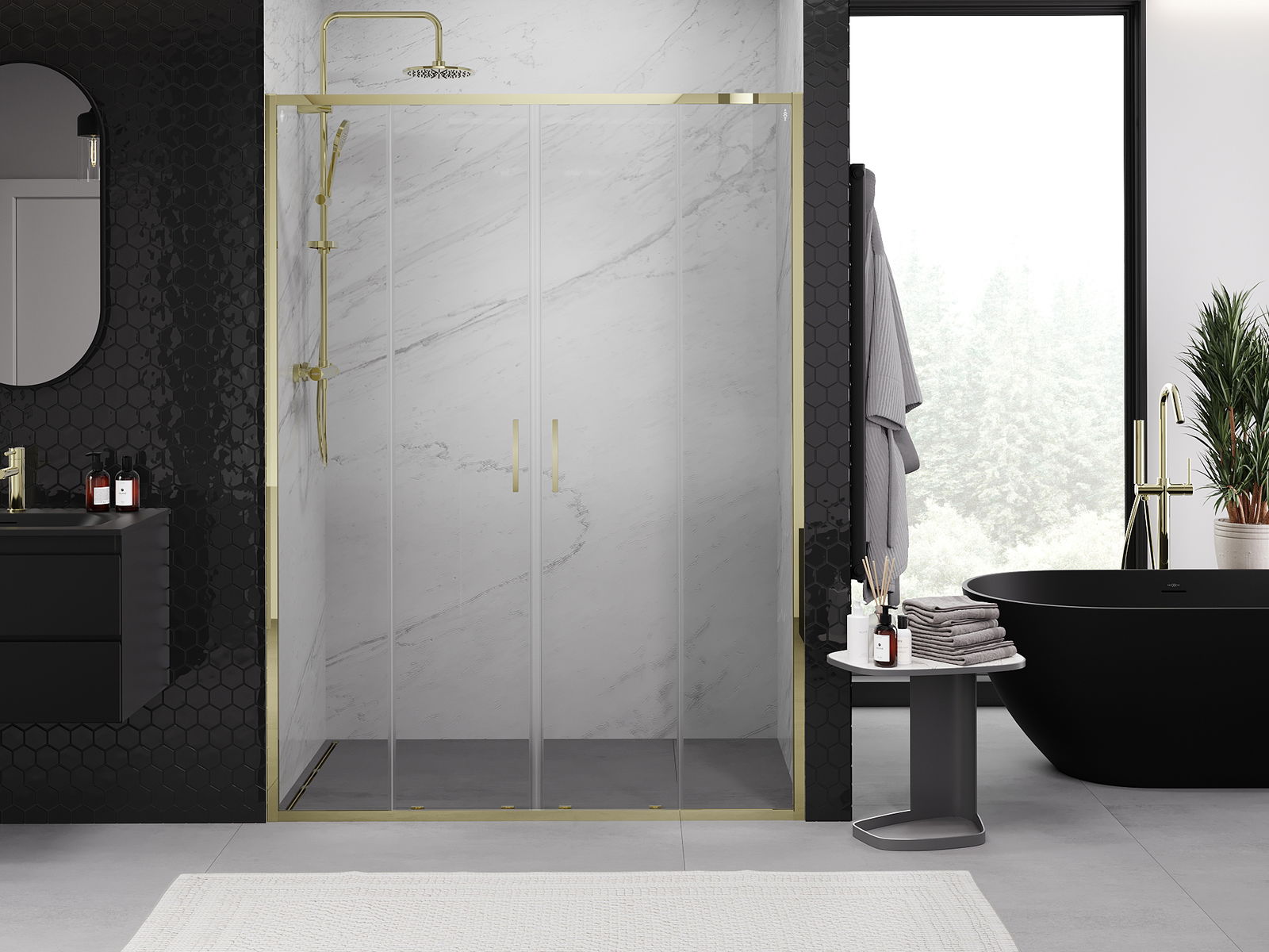 Mexen Exo dubultās bīdāmās dušas durvis 140 cm, caurspīdīgas, zelta - 8152-140-000-50-00