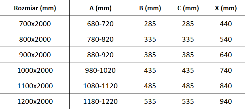 Dušas kabīnes, durvis un sienas ir standarta variantā pielāgotas uzstādīšanai uz noteiktu izmēru dušas paliktņiem. Tieši šie izmēri ir norādīti produkta nosaukumā vai aprakstā. Tomēr jāņem vērā, ka elementu faktiskie izmēri var nedaudz atšķirties no nominālajām vērtībām. Plānojot uzstādīšanu tieši uz grīdas, ieteicams rūpīgi pārbaudīt ārējos izmērus un elementu izvietojumu saskaņā ar tehnisko zīmējumu.