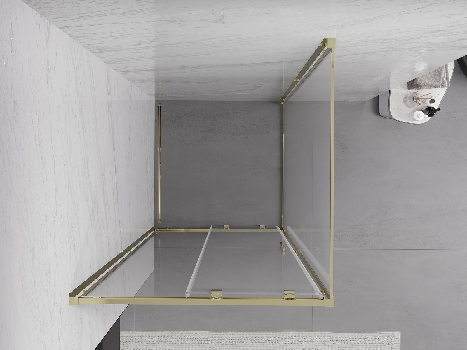 Mexen Exo bīdāmā dušas kabīne 100 x 100 cm, caurspīdīga, zelta - 8151-100-100-50-00
