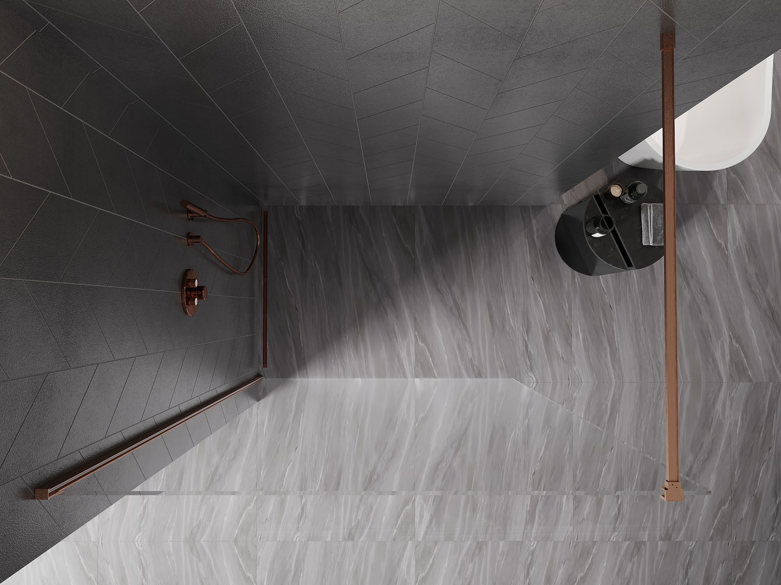 Mexen Kioto-X dušas siena Walk-in 50 x 200 cm, caurspīdīgs 10 mm, matēts varš - 800-050-101-65-00-X