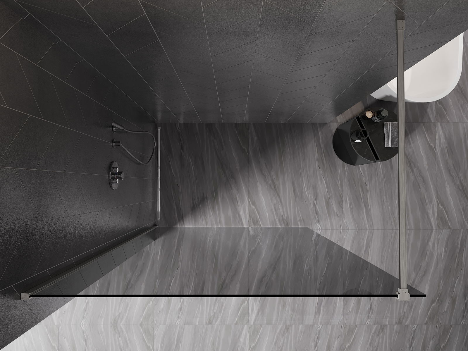 Mexen Kioto-X Duša sienas Walk-in 120 x 200 cm, grafīts 10 mm, matēts niķelis - 800-120-101-97-40-X