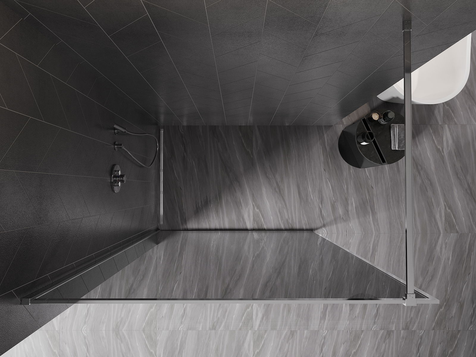Mexen Kioto-XF duša siena Walk-in ar rāmi 90 x 202 cm, grafīta 10 mm, hroms - 800-090-104-01-40-X