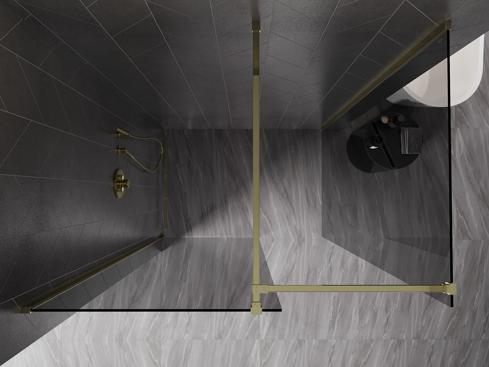 Mexen Kioto-X Dušas siena Walk-in 90 x 70 cm, caurspīdīga 10 mm, zelta - 800-090-202-50-00-070-X