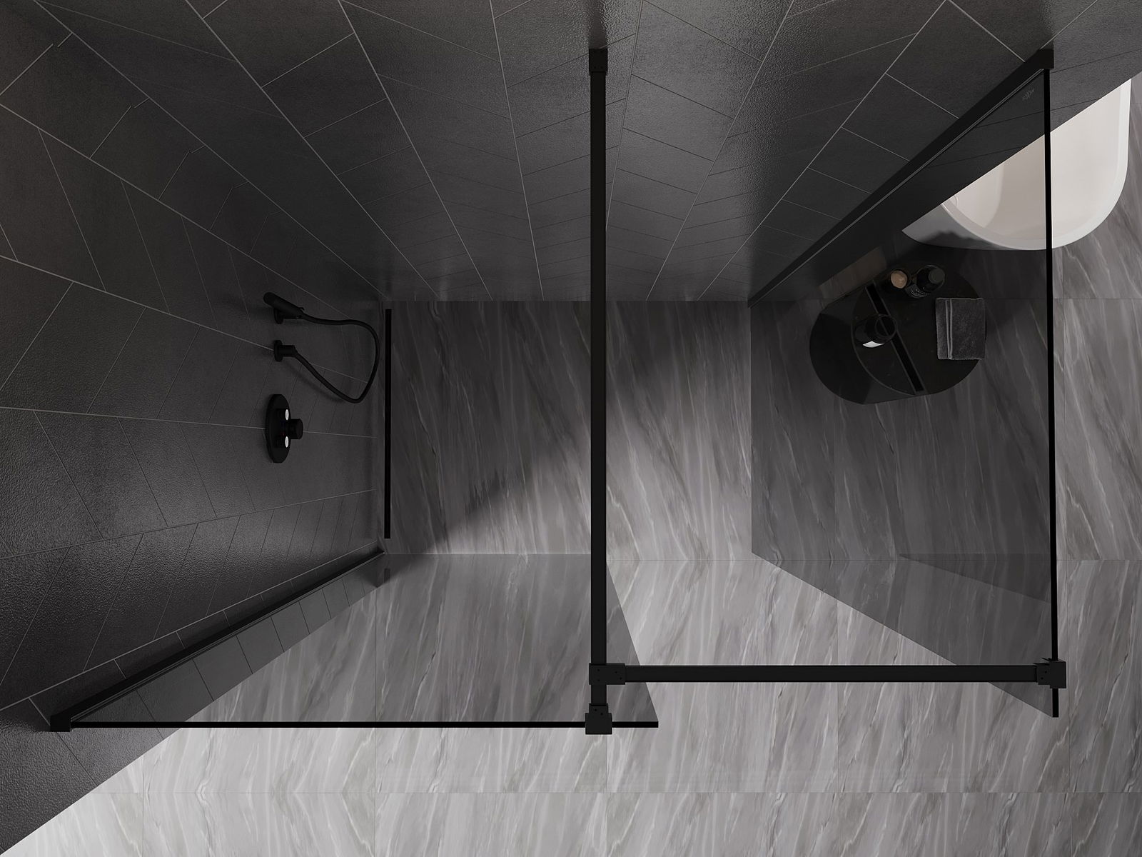 Mexen Kioto-X dušas siena Walk-in 140 x 110 cm, caurspīdīga 10 mm, melna - 800-140-202-70-00-110-X