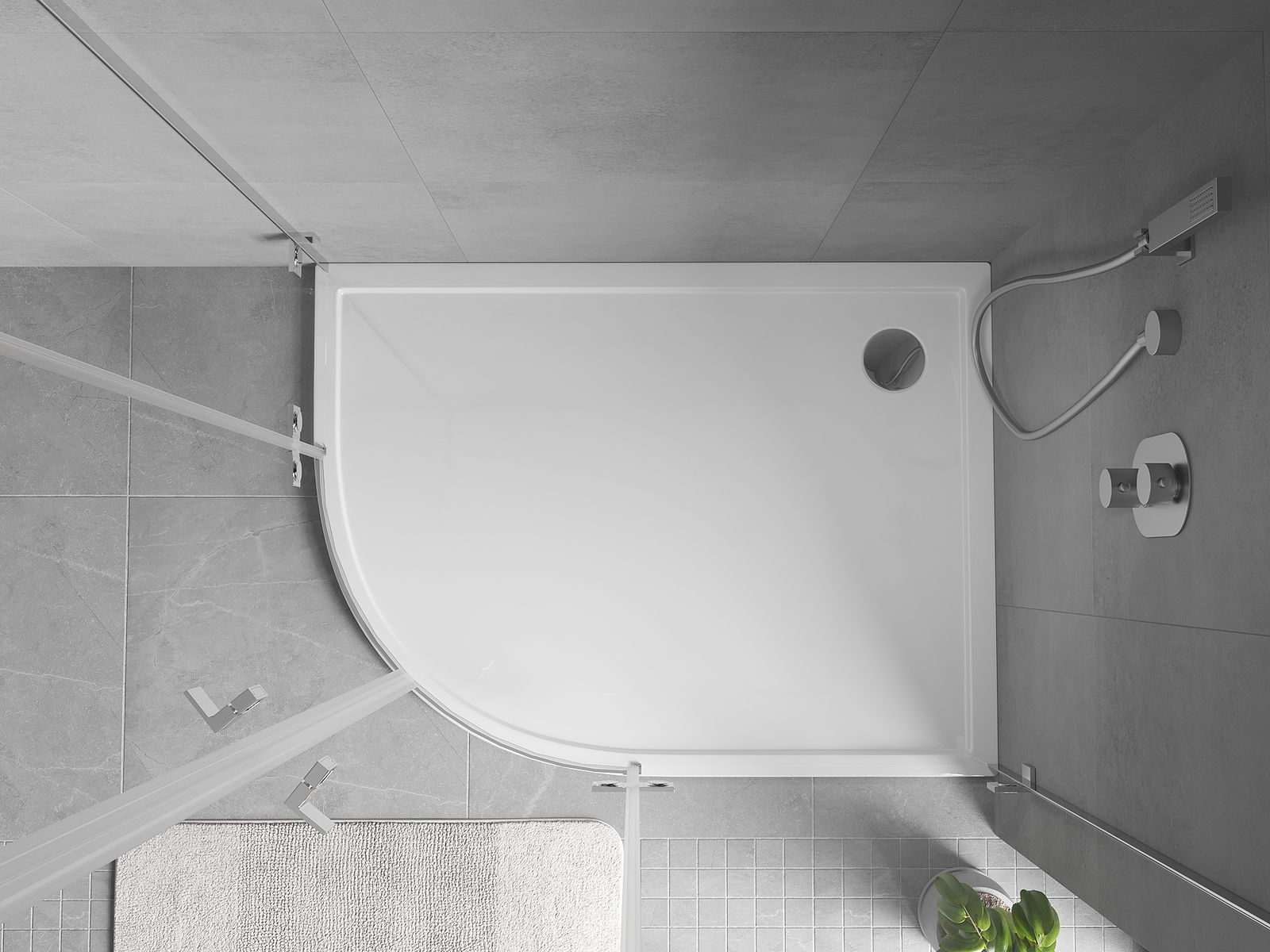 Mexen Flow asimetrisks pusapaļais dušas paliktnis slim labais 100 x 90 cm, balts spīdums - 46Q109010R