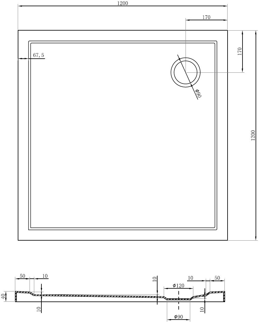 Mexen Flow kvadrātveida dušas paliktnis slim 120 x 120 cm, melns matēts - 46S701212