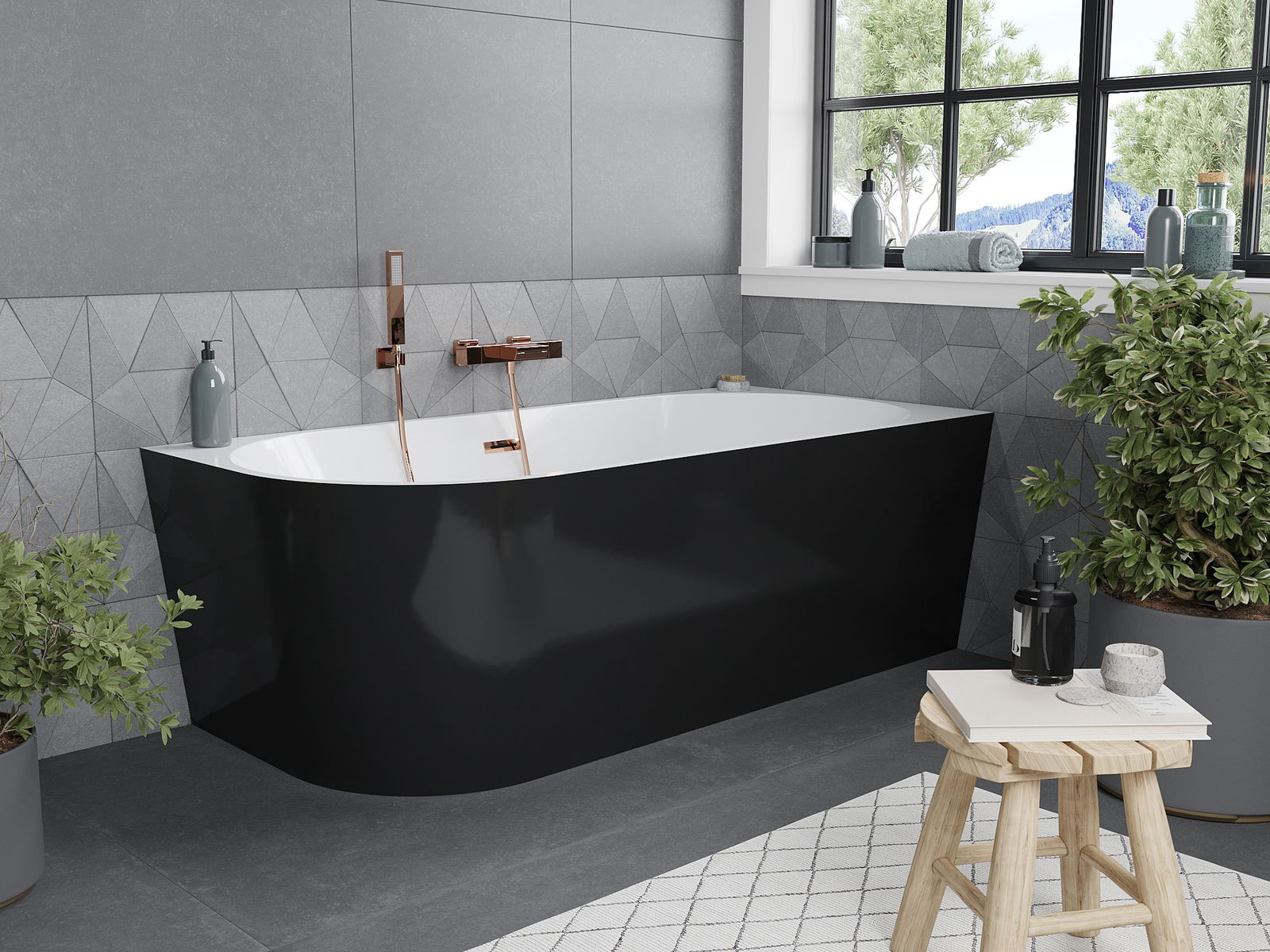 Mexen Mia brīvi stāvoša stūra vanna labā 160 x 80 cm, balta/melna, pārplūst rozā zelts - 52691608075P-60