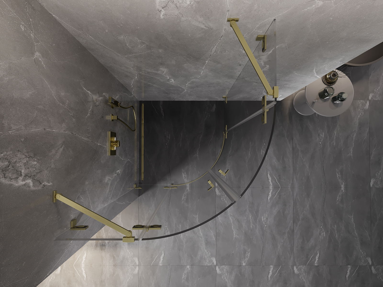 Mexen Lunar puskveida dušas kabīne atverama 70 x 70 cm, caurspīdīga, zelta matēta - 833-070L-070P-55-00