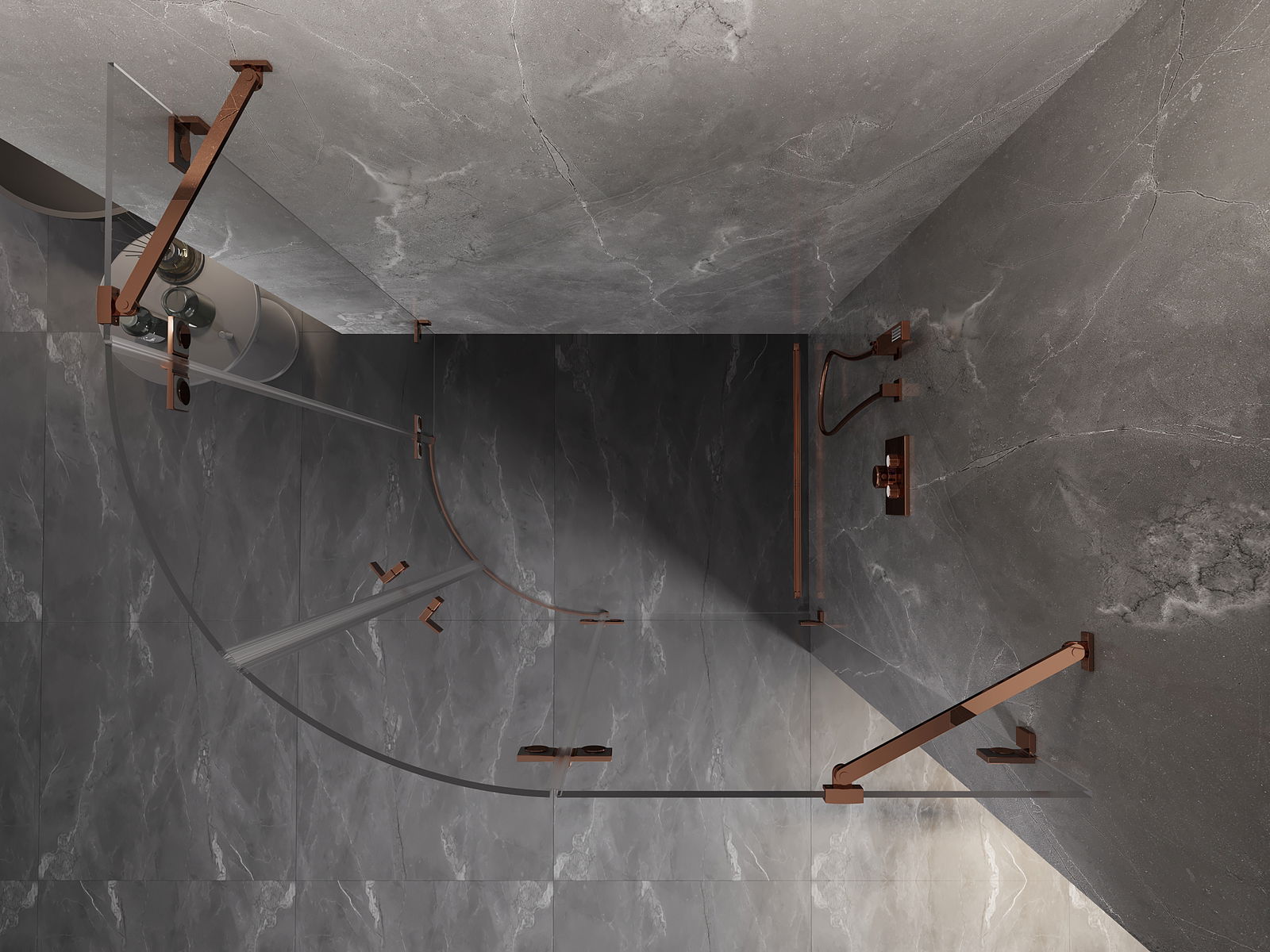 Skavas un eņģes ir izgatavotas no ļoti izturīga misiņa un papildus veido vienā līmenī esošu stikla virsmu. Tas ir lieliska izvēle, kas apvieno eleganci, izturību un modernu dizainu. Šādi risinājumi paaugstina dušas estētiku un vienlaikus atvieglo tīrības uzturēšanu.