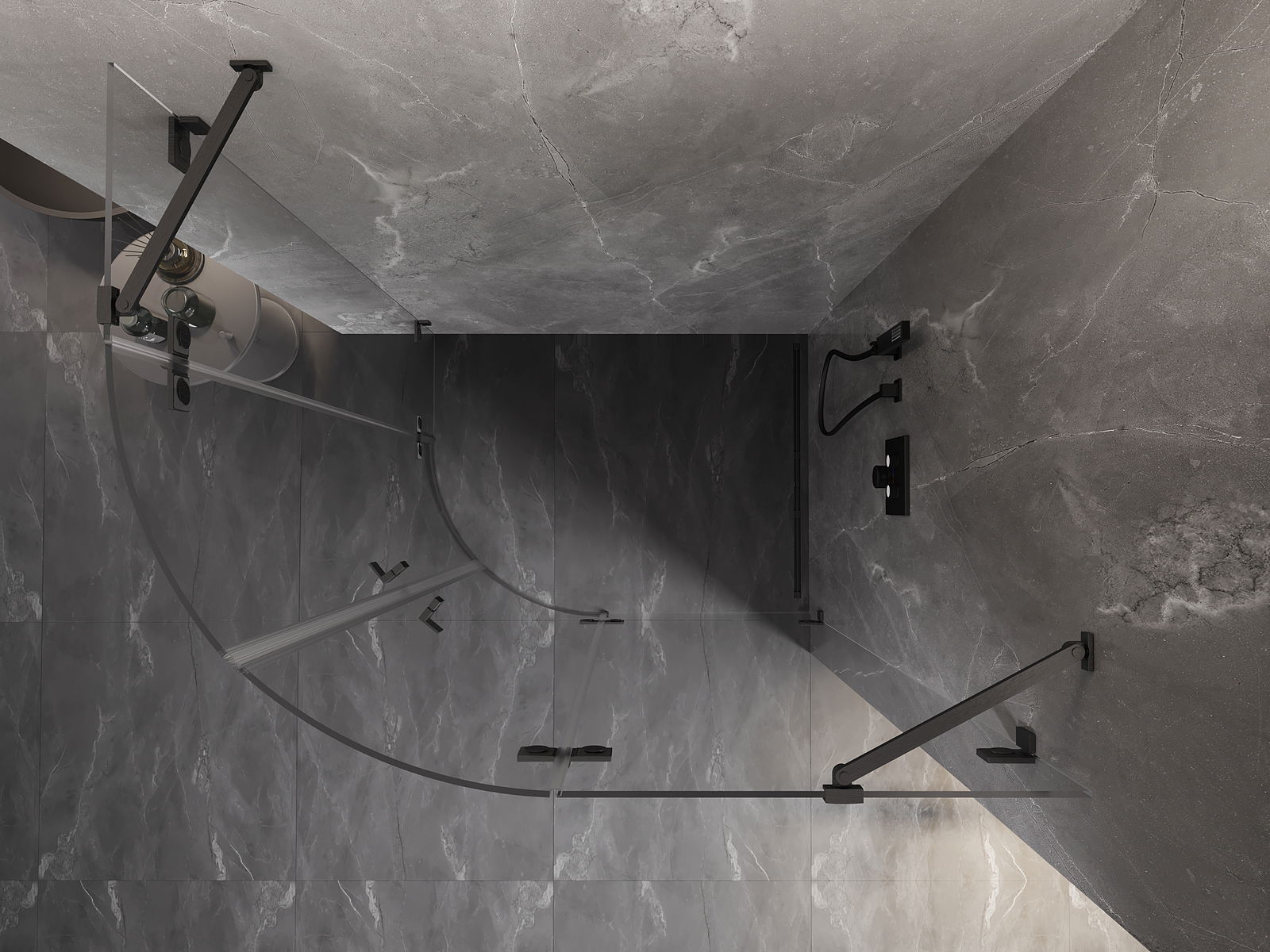 Mexen Lunar puseapaļš dušas kabīne ar atveramām durvīm, labā puse 90 x 80 cm, caurspīdīgs, gun gray matēts - 833-090P-080L-66-00
