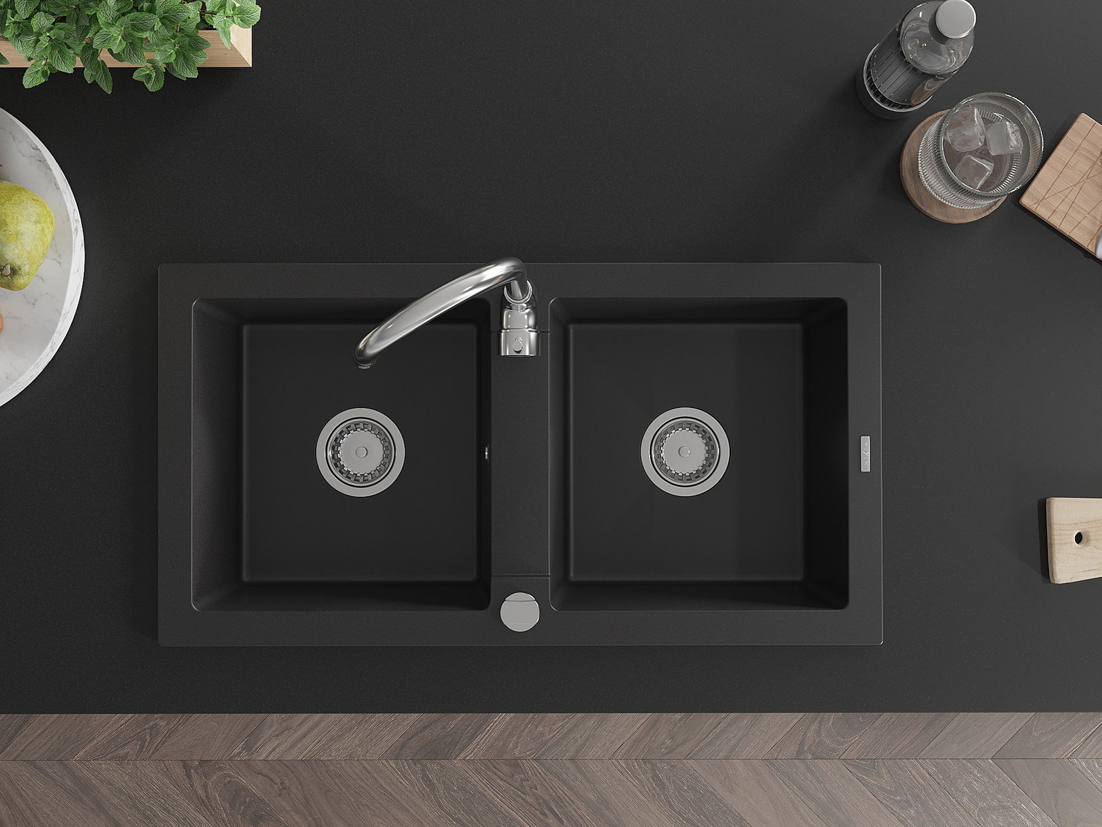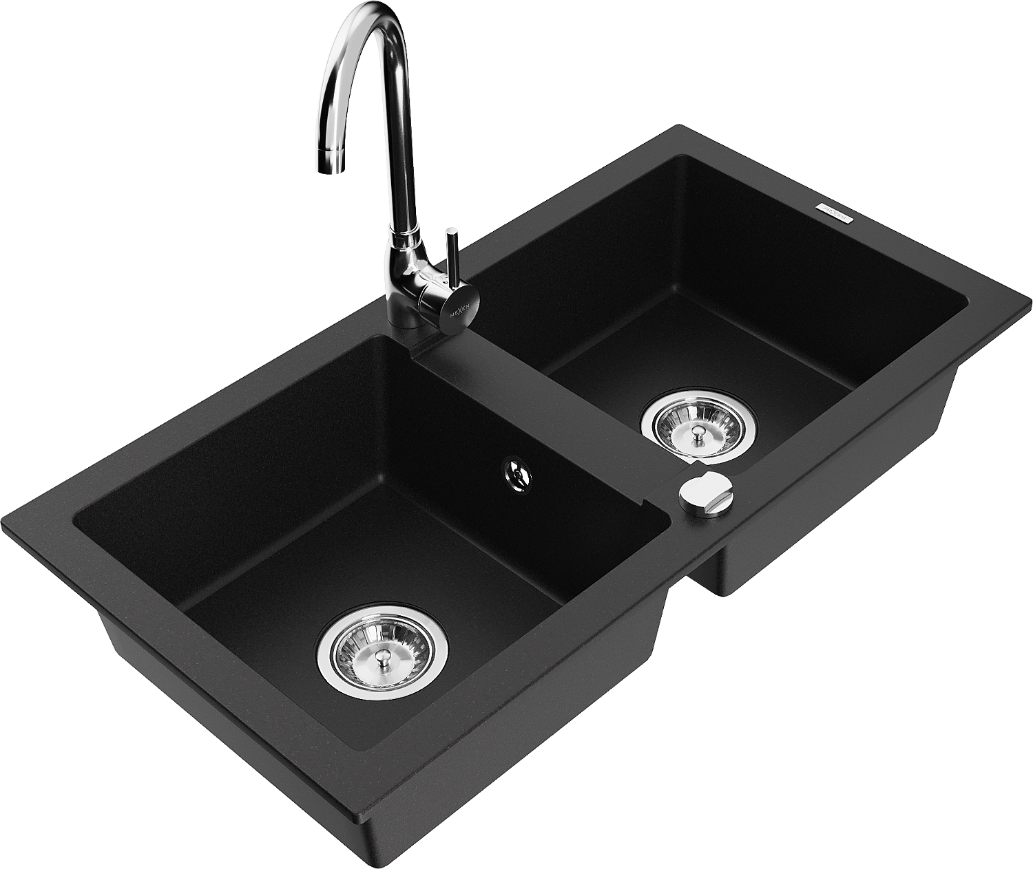 Mexen Mario divu nodalījumu granīta izlietne ar virtuves jaucējkrānu Telma, melna - 6504-77-670200-00