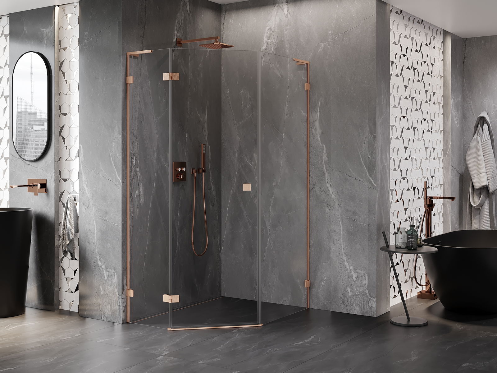 Mexen Lunar L piecstūra dušas kabīne ar eņģēm, kreisā 80 x 100 cm, caurspīdīga, matēts varš - 831L-080L-100P-65-00-L