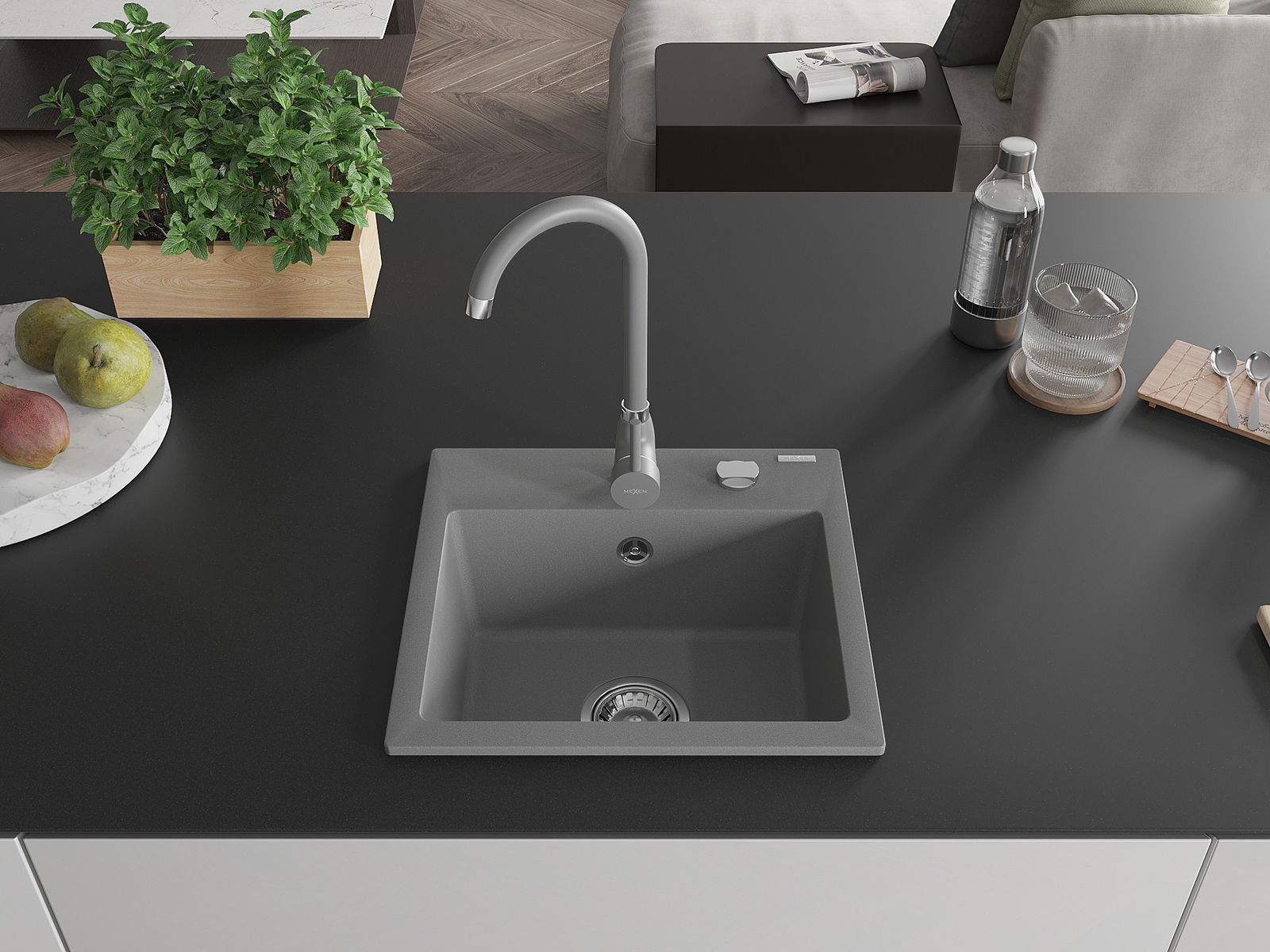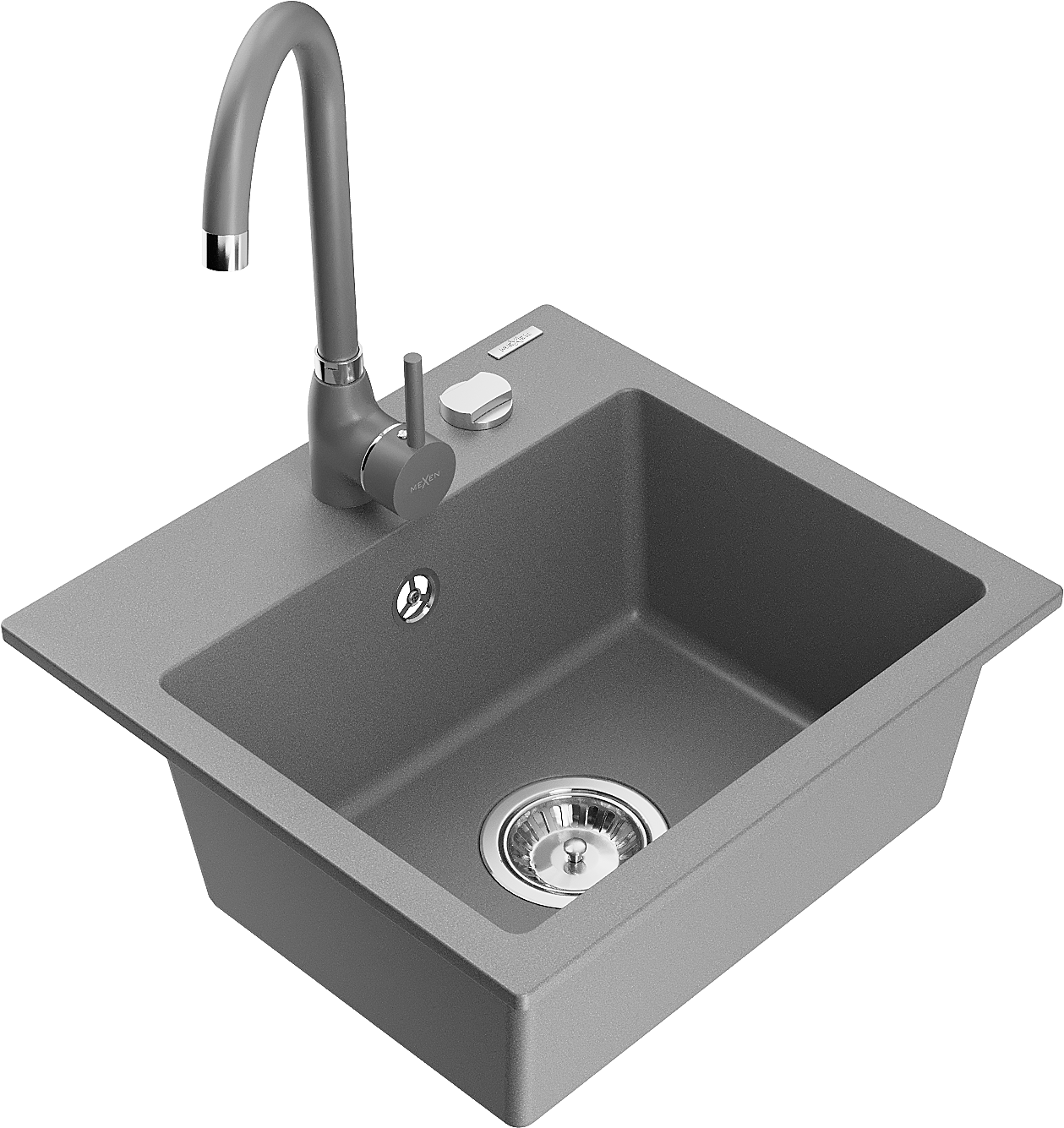 Mexen Milo granitē izlietne ar vienu nodalījumu un virtuves jaucējkrānu Telma, pelēka - 6505-71-670200-71