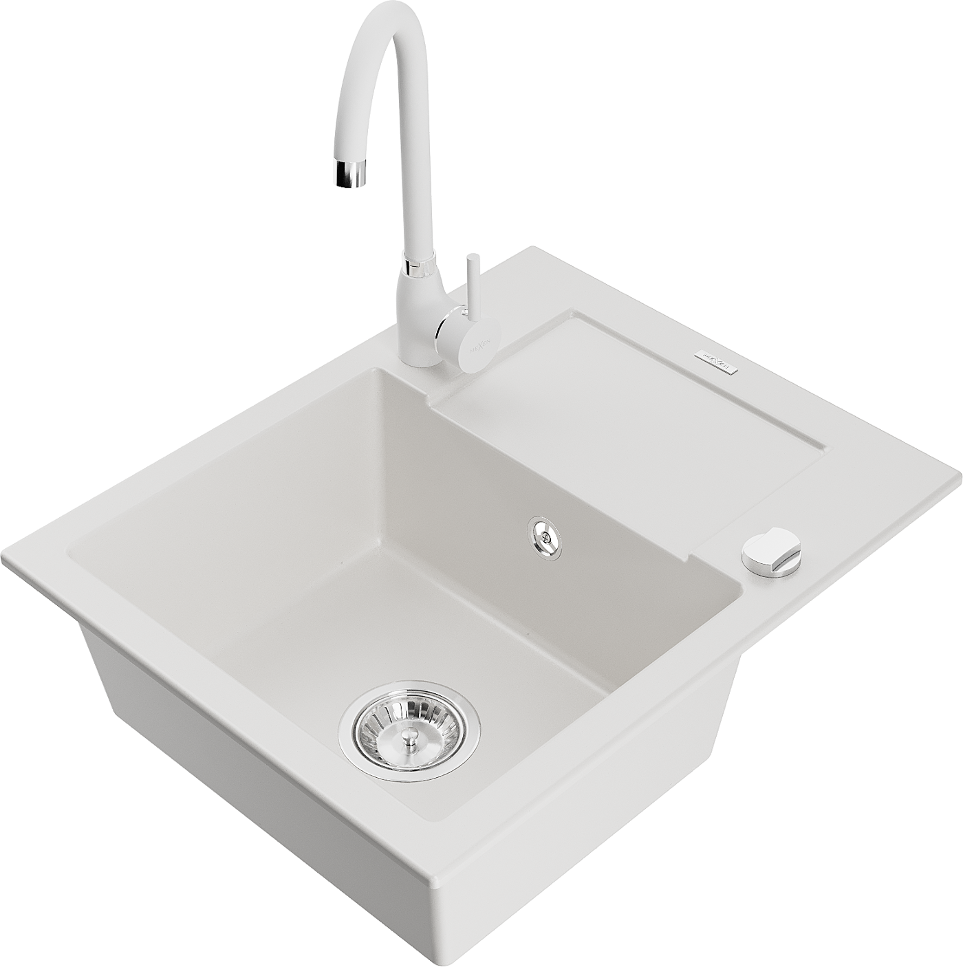 Mexen Enzo 1-kameru granīta izlietne ar noteces virsmu un virtuves jaucējkrānu Telma, balts - 6506-20-670200-20