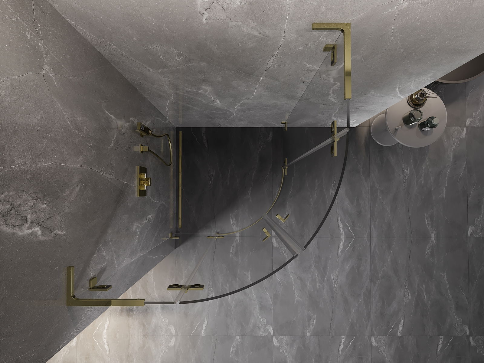 Skavas un eņģes ir izgatavotas no ļoti izturīga misiņa un papildus veido vienā līmenī esošu stikla virsmu. Tas ir lieliska izvēle, kas apvieno eleganci, izturību un modernu dizainu. Šādi risinājumi paaugstina dušas estētiku un vienlaikus atvieglo tīrības uzturēšanu.
