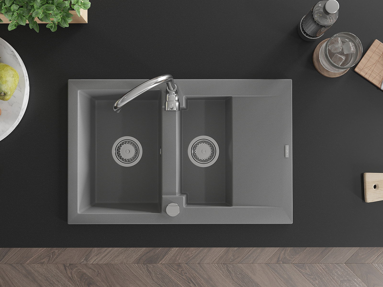 Mexen Gaspar granitizlietne 1,5 nodalījumu ar notekas vietu un virtuves jaucējkrānu Telma, pelēks - 6507-71-670200-00