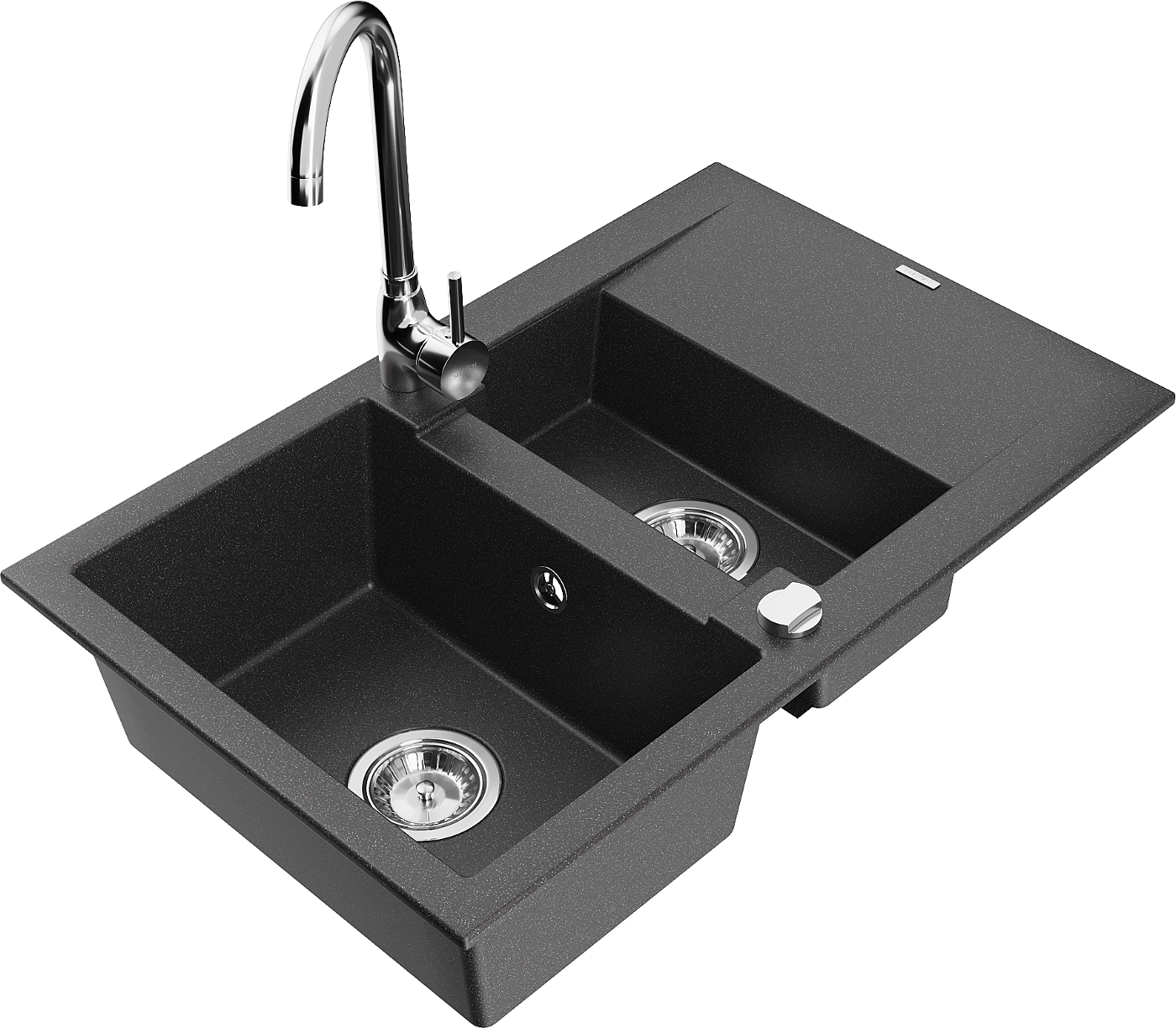Mexen Gaspar 1,5 nodalījumu granīta izlietne ar žāvētāju un Telma virtuves krānu, melna plankumaina - 6507-76-670200-00