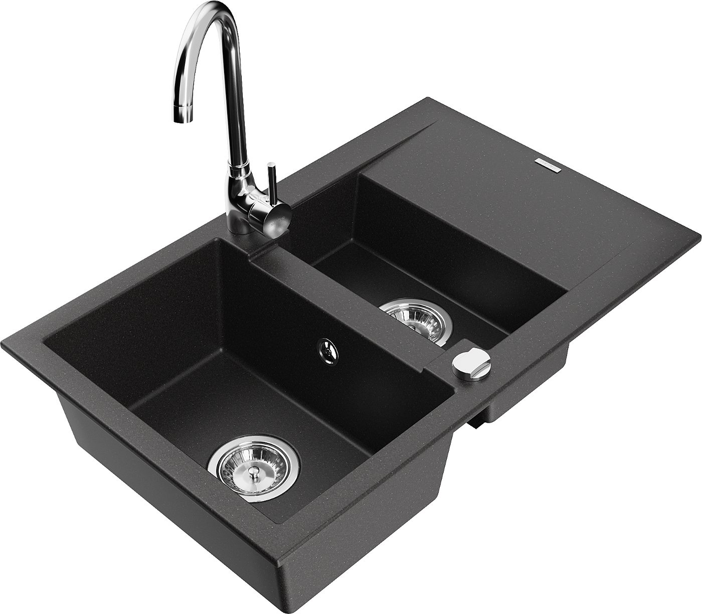 Mexen Gaspar Granitizlietne 1,5 nodalījuma ar notecinu un virtuves jaucējkrānu Telma, melns - 6507-77-670200-00