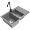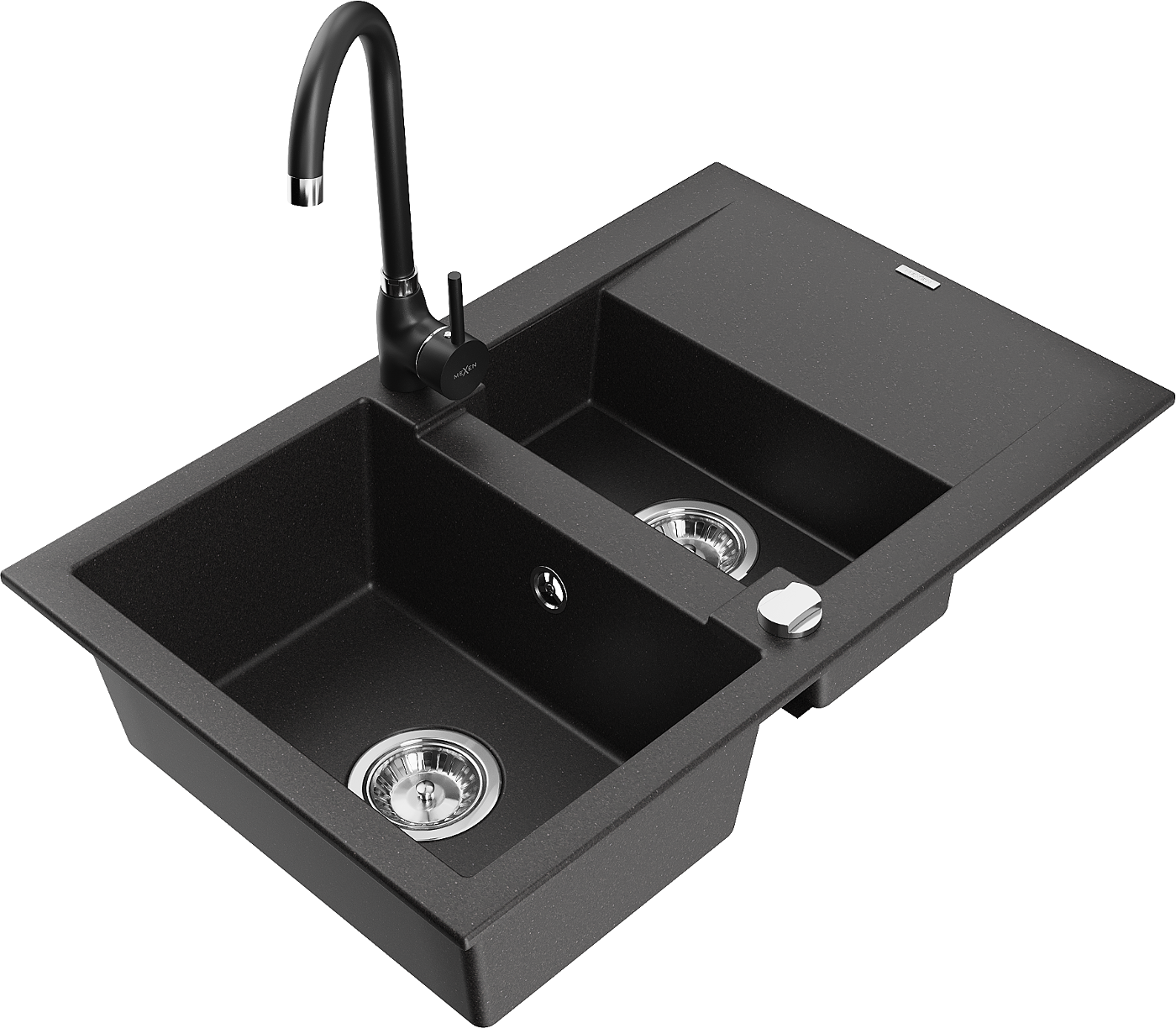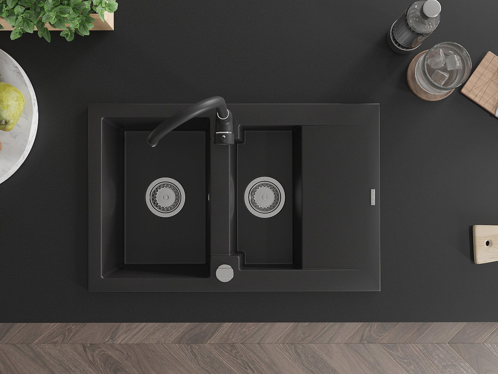 Mexen Gaspar granitē izlietne 1,5 nodalījumu ar notecināšanas plātni un virtuves jaucējkrānu Telma, melna - 6507-77-670200-70