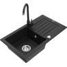 Mexen Pablo 1-kameru granīta izlietne ar noteces zonu un virtuves jaucējkrānu Telma, melna/zeltīta - 6510-75-670200-70