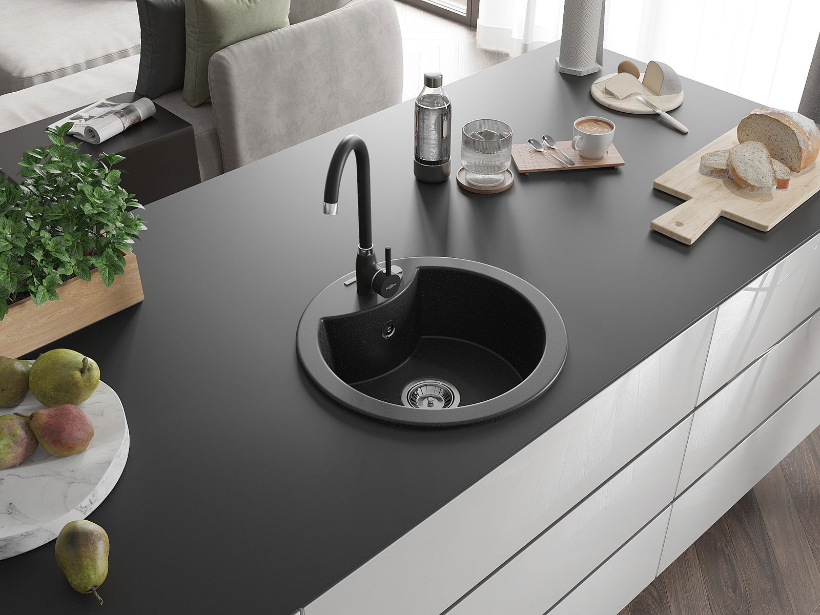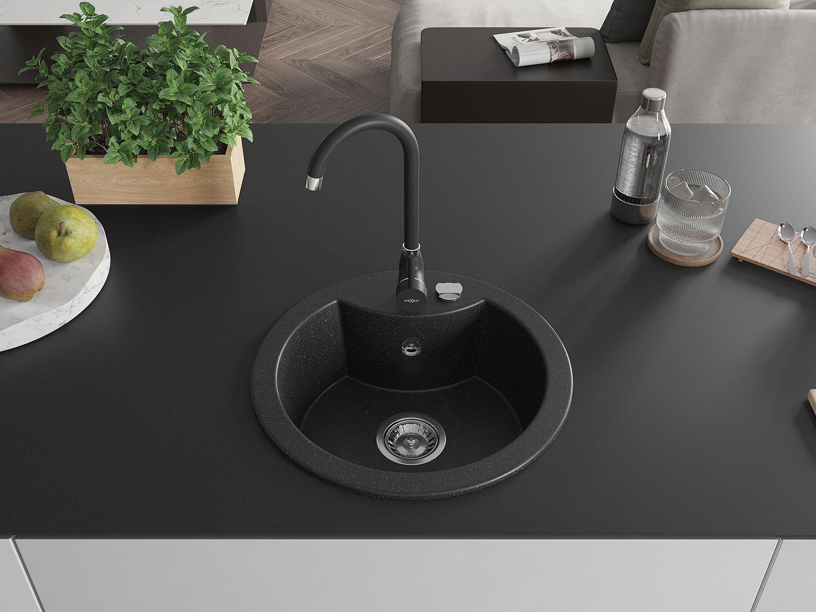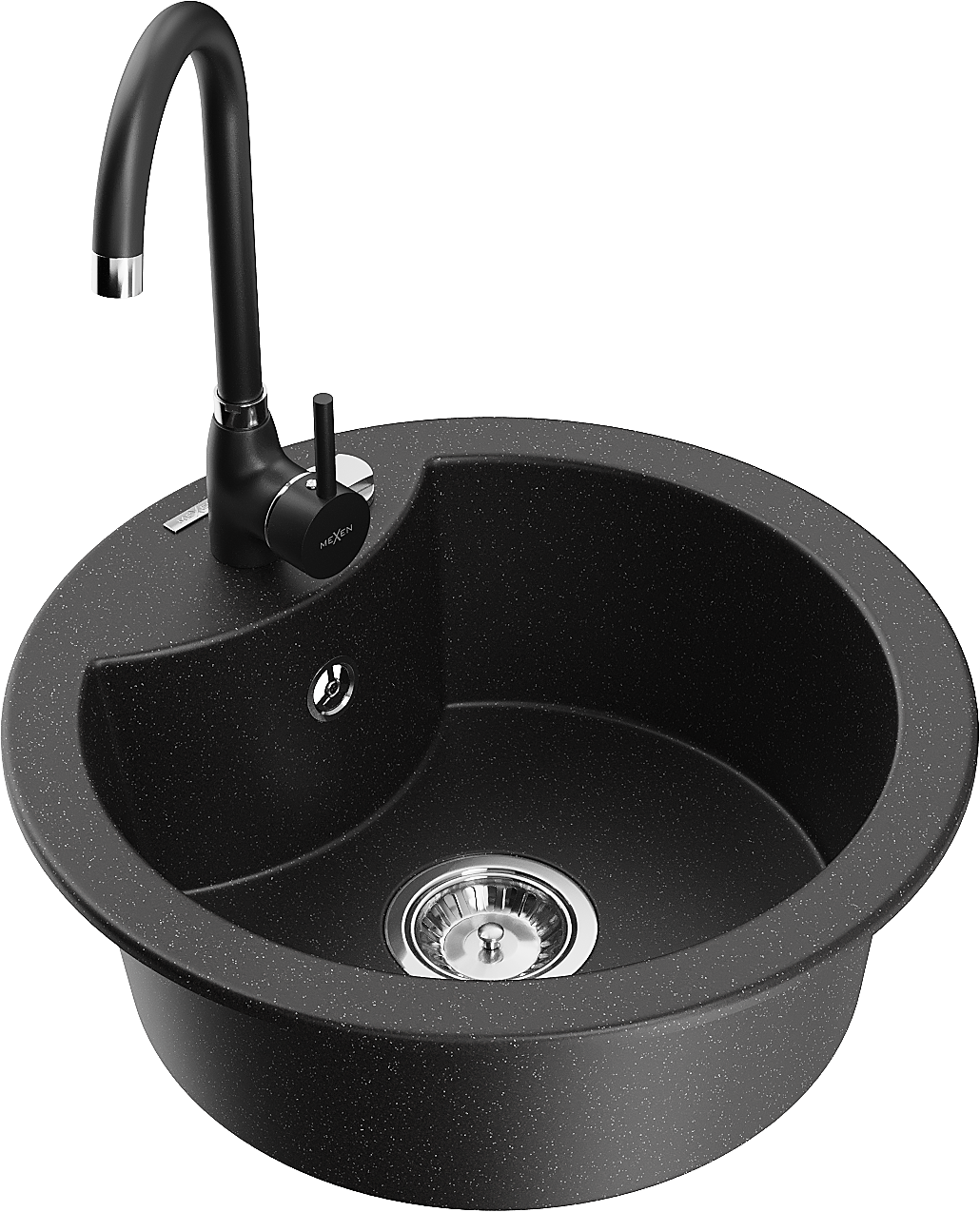 Mexen Diego vienas balta granīta izlietne ar virtuves jaucējkrānu Telma, melns/sudrabains - 6512-73-670200-70