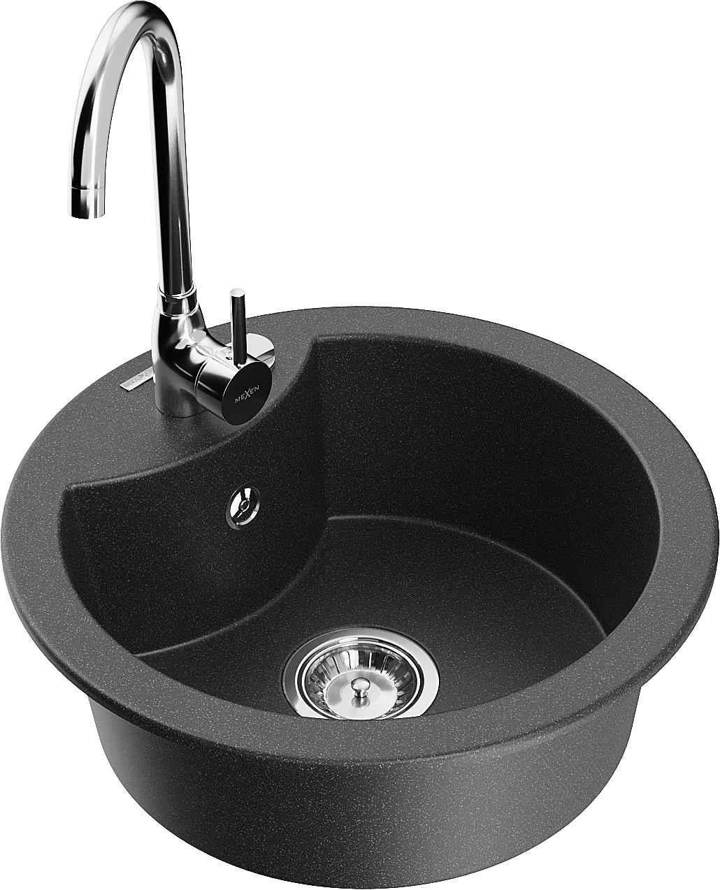 Mexen Diego granitizlietne ar 1 nodalījumu un virtuves jaucējkrānu Telma, melna ar spīdumiem - 6512-76-670200-00