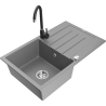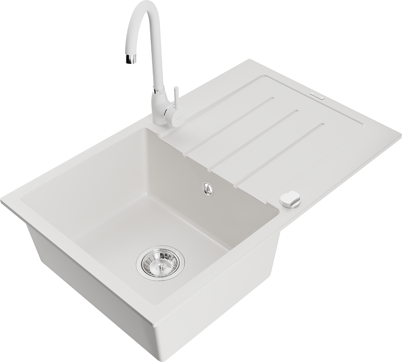 Mexen Bruno granitā izlietne ar vienu nodalījumu un notecēšanas vietu un virtuves jaucējkrānu Telma, balts - 6513-20-670200-20