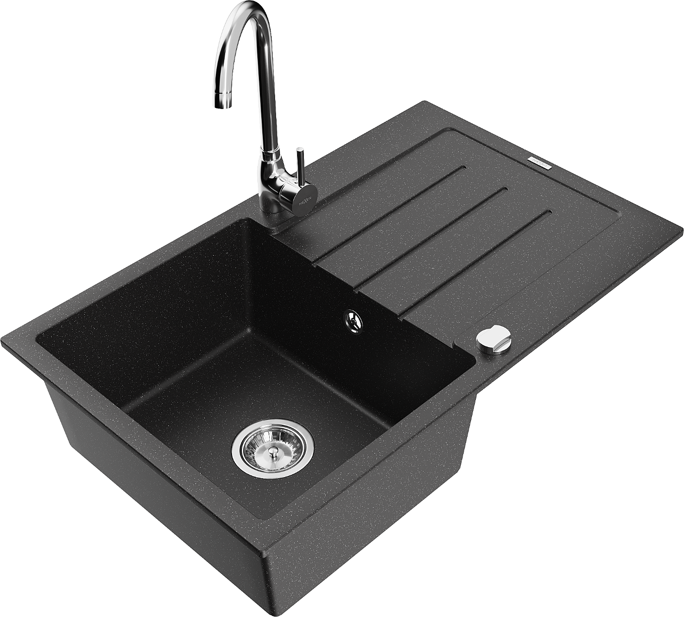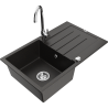 Mexen Bruno granit izlietne ar vienu nodalījumu ar žāvētāju un virtuves jaucējkrānu Telma, melna/sudraba - 6513-73-670200-00